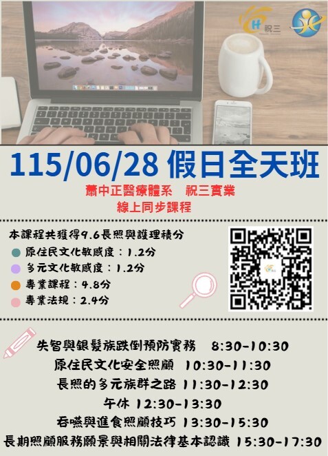 10:30-11:30 原住民文化安全照顧 1.2分(專業倫理/原住民文化敏感度)